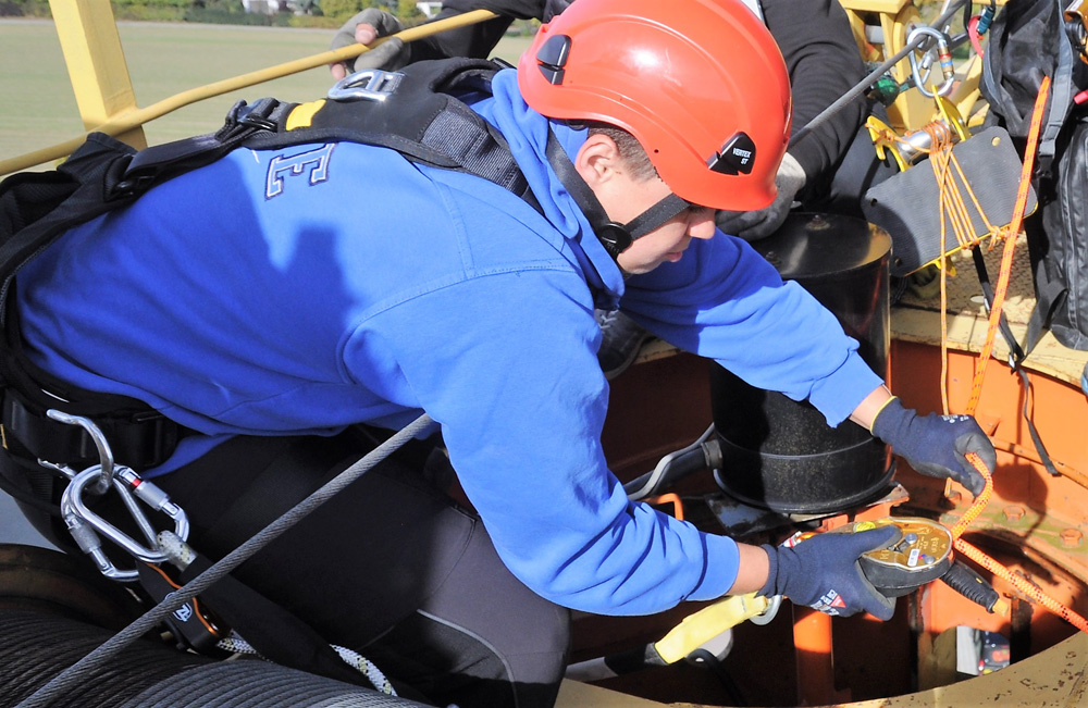 Die Arbeitssicherheit und Technik GmbH schult im Rahmen der Trainerausbildung „Persönliche Schutzausrüstung gegen Absturz (PSAgA)“ auch die Personenrettung von einem Turmdrehkran.